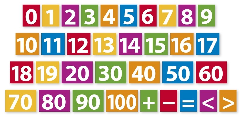 Čísla do 20 a násobky desiatkou do 100. Veľké farebné čísla je možné využiť k výzdobe triedy, pracujte s nimi aj v skupinách.